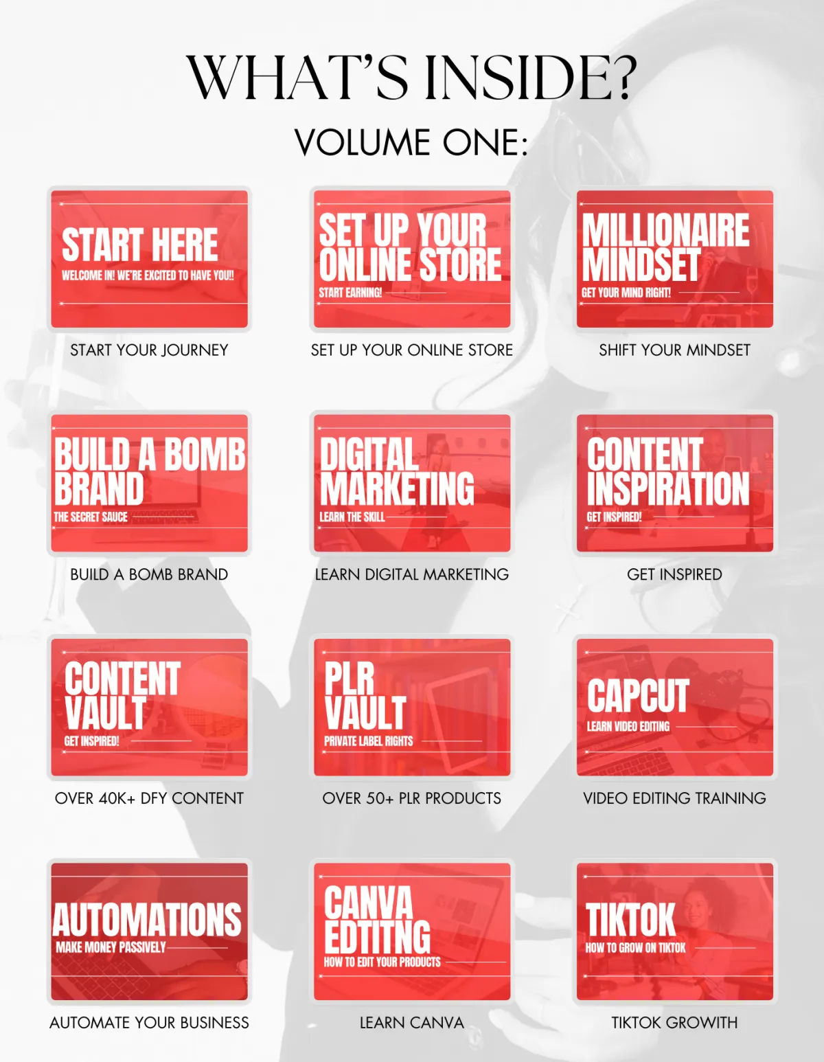 The perfect blend of some of the TOP courses out there + more! Why spend over $3,000+ on all of the courses individually when you can get it all for the price of ONE! LEARN new skills, DEVELOP new income streams, and start earning from your INVESTMENT!